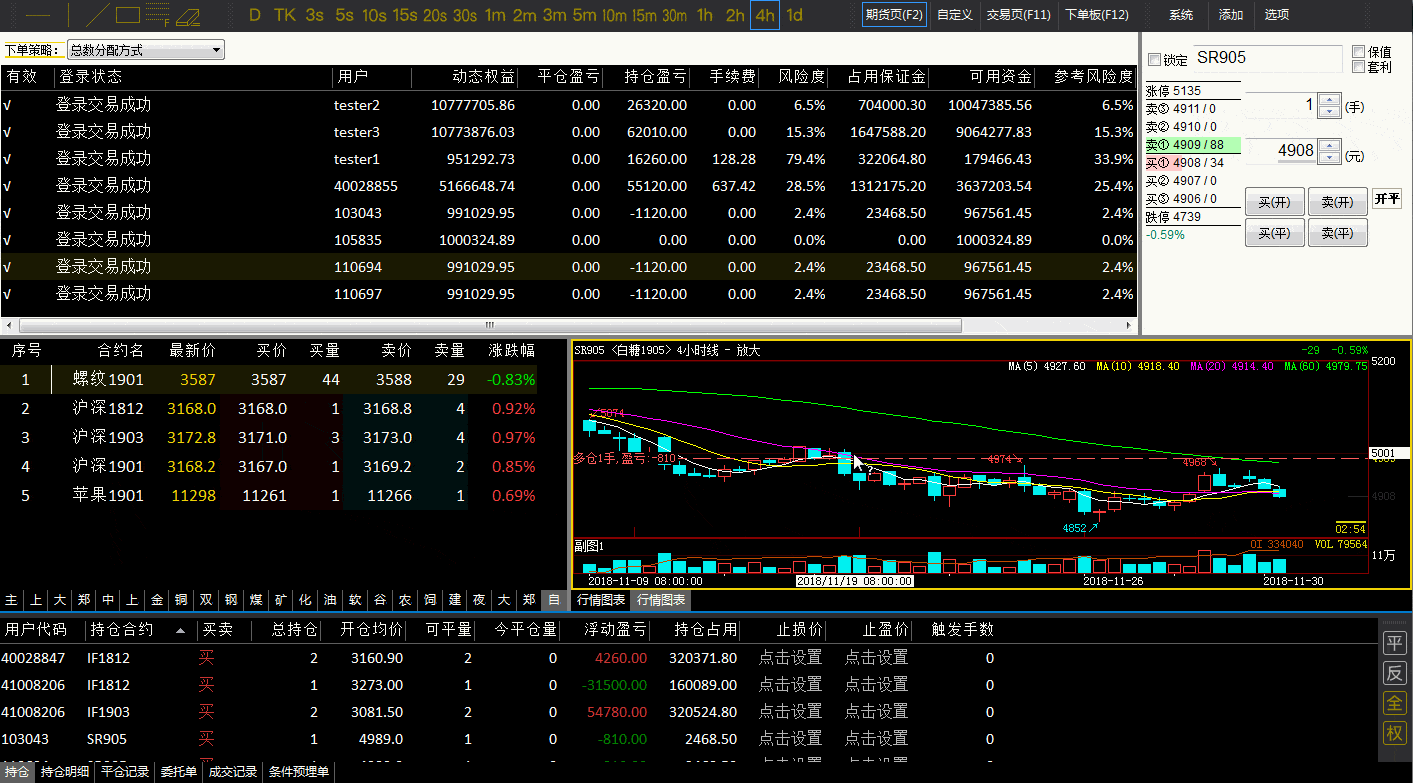 如何写反手交易,先平仓,再开仓self.trade.insertOrder(instrumentId, "SELL", "CLOSE", position.pos,quote. bid_price1 - quote.price_tick * 5) if position.pos == 0 and orderNum != 0: order... |