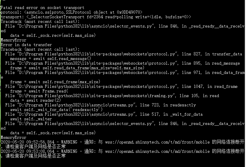 我是根据多线程的例子,监控12个合约,开了12个线程,在每个线程中用了该合约的4个周期,是不是太多了,导致每半个小时就出现一次MemoryError。该如何改进呢?