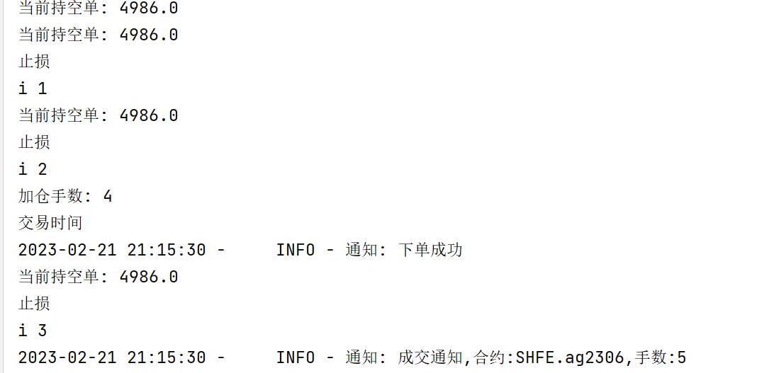 请问为什么我已经break了,还一直打印 i ,最终没持仓了,不打印i 了。