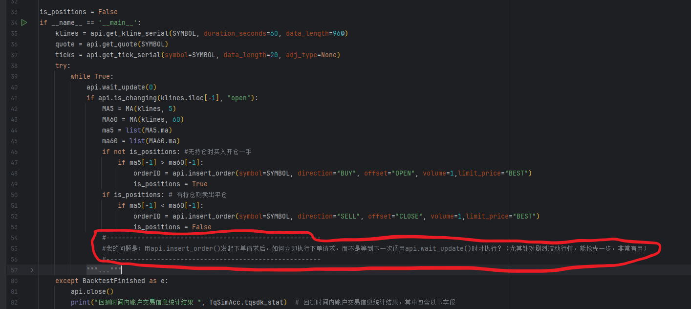 用api.insert_order()发起下单请求后,如何立即执行下单请求,而不是等到下一次调用api.wait_update()时才执行?(尤其针对剧烈波动行情,能抢先一步,非常有用)