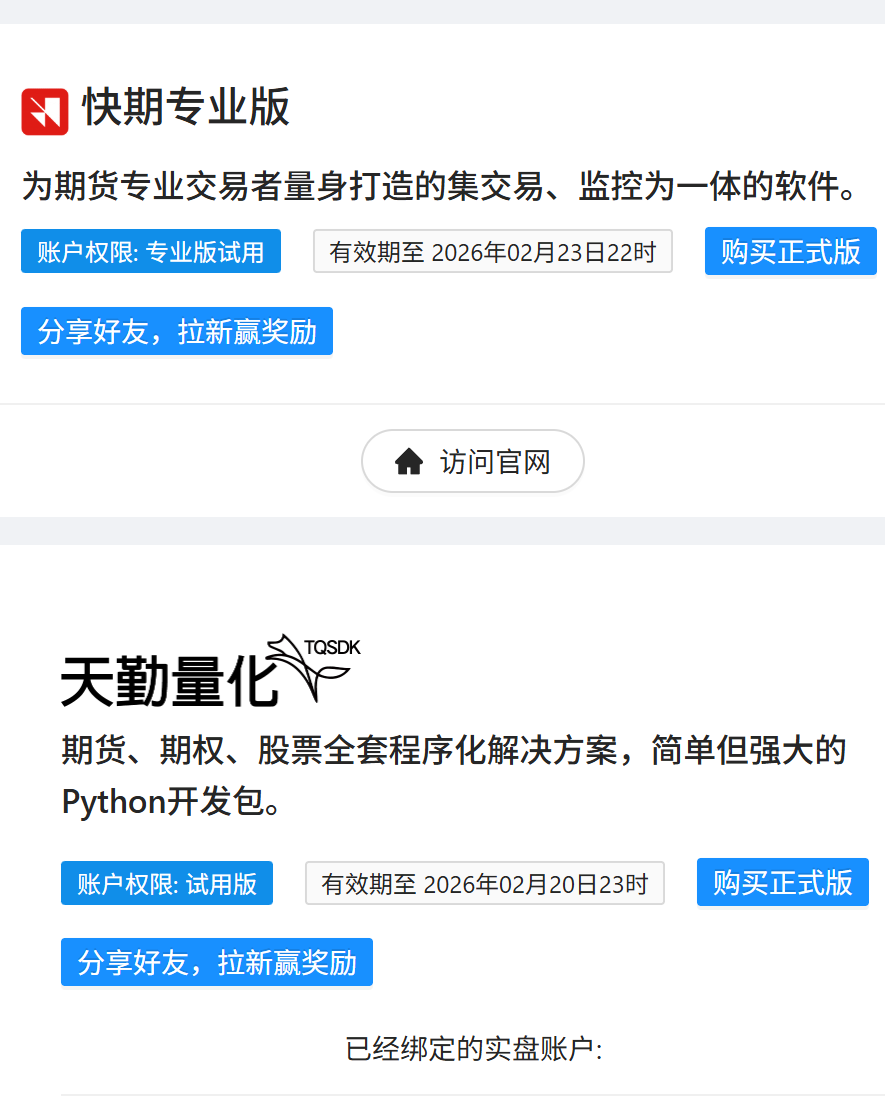 关于快期专业版和天勤量化问题